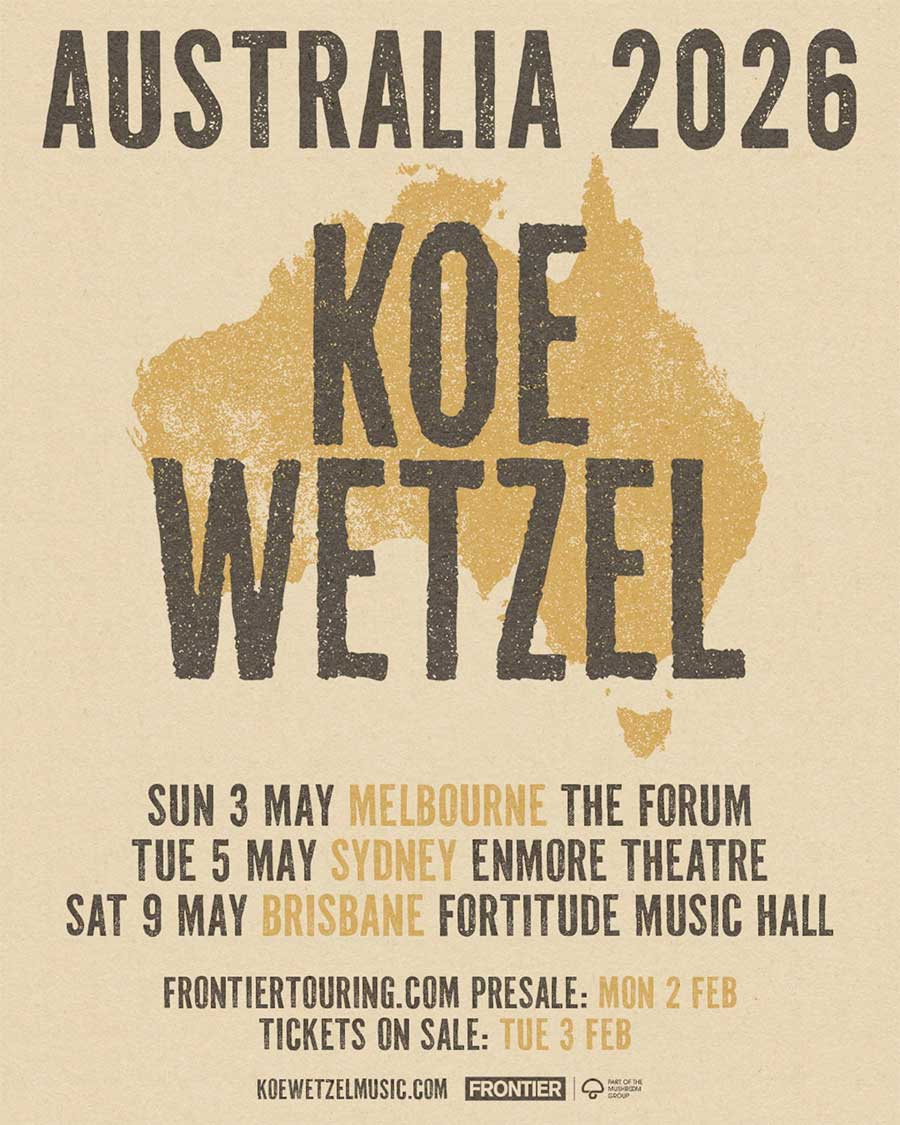 Frontier Touring is proud to announce the return of one of country music’s most electric forces, KOE WETZEL, as he heads back to Australia this May on the heels of announcing brand new music arriving next Friday 6 February, with “Time Goes On”!